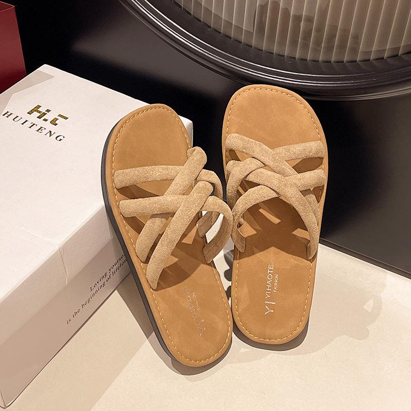 Римские однословные шлепанцы женские нескользящие универсальные крутые шлепанцы пляжные летние в горошек модные 42 хаки