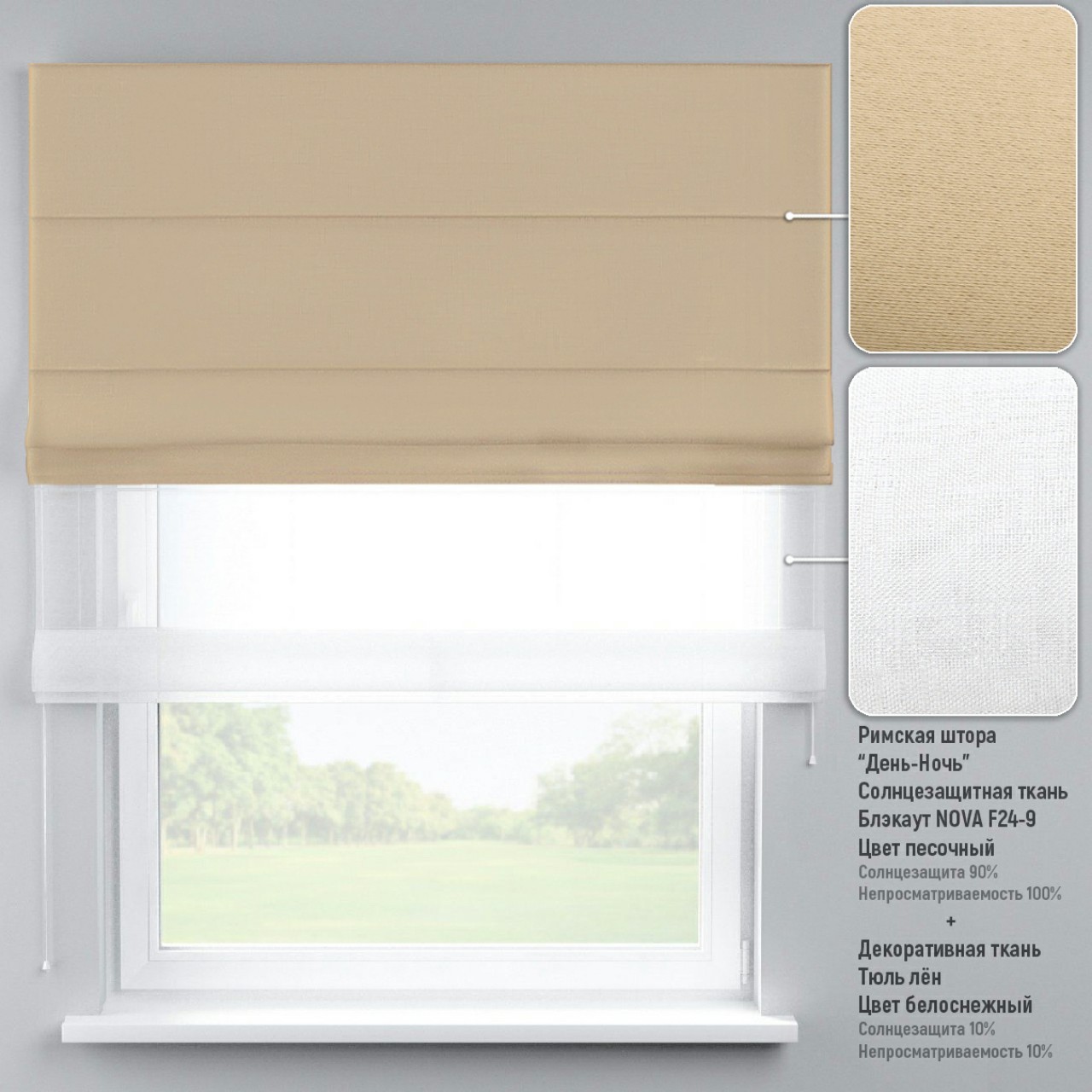 Римские шторы DECOLIV День-Ночь Тюль/Блэкаут песочный 240*170 см
