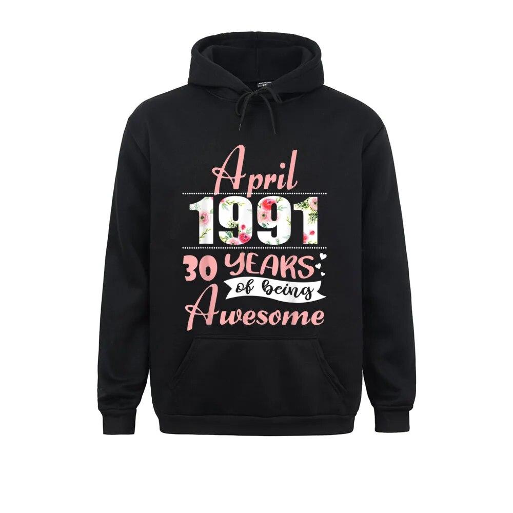 Родившиеся в апреле 1991 года, 30 лет быть потрясающими, забавные толстовки унисекс на День отца, забавные капюшоны с длинными рукавами, толстовки в стиле ретро