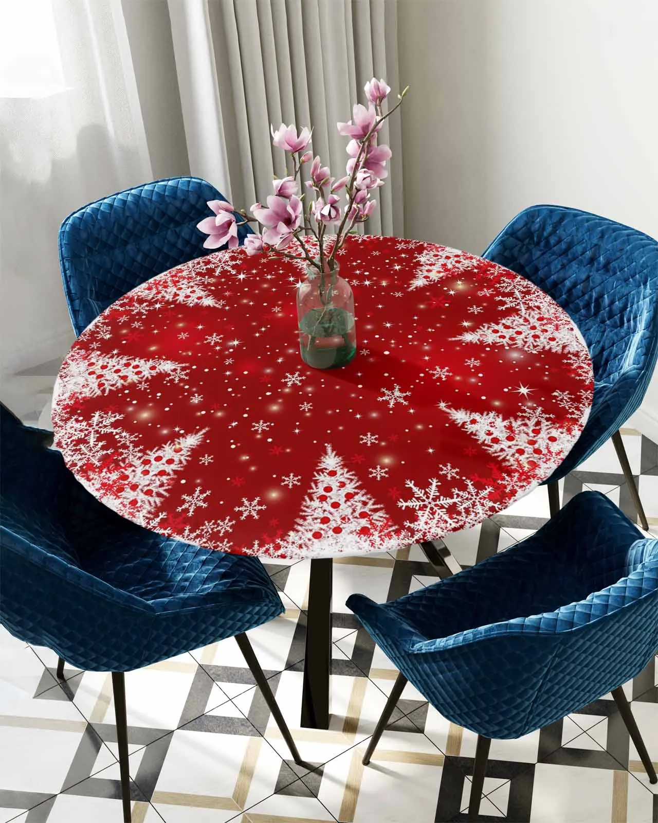 Рождественская Красная рождественская елка круглая эластичная обрезная скатерть Защитная ткань Водонепроницаемая прямоугольная облегающая скатерть