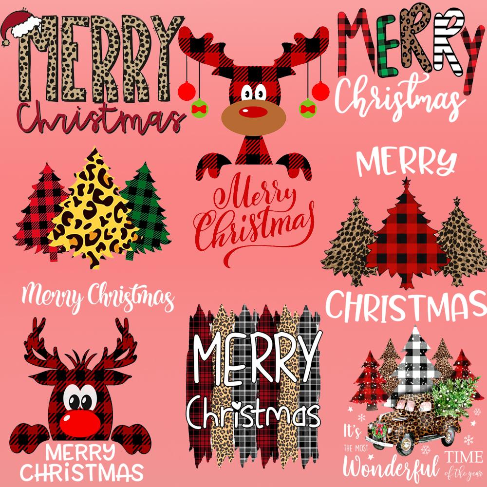 Рождественская елка Олень Термопереводные Клеевые Нашивки Футболки Аппликации Одежда Детская Школьная Сумка Украшения Печать Праздничный Подарок
