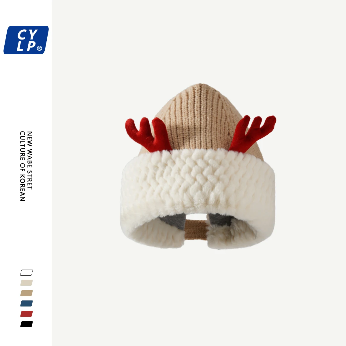 Рождественская милая плюшевая вязаная шапка с рогом оленя женская зимняя теплая шерстяная шапка корейского стиля