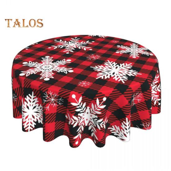 Рождественская скатерть в клетку со снежинками, новогодний стиль, круглая форма, простая в уходе, защита стола, банкеты, столовая, кухня, украшение для вечеринки Snowflake