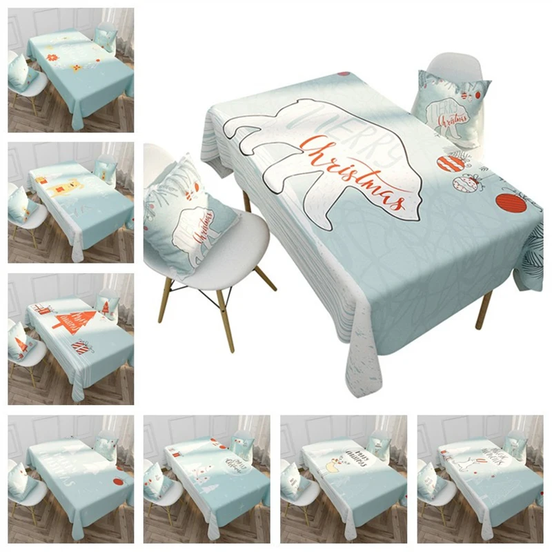 Рождественская хлопковая скатерть светильник-голубой медведь Рождественская елка льняная прямоугольная скатерть для банквечерние домашнее украшение