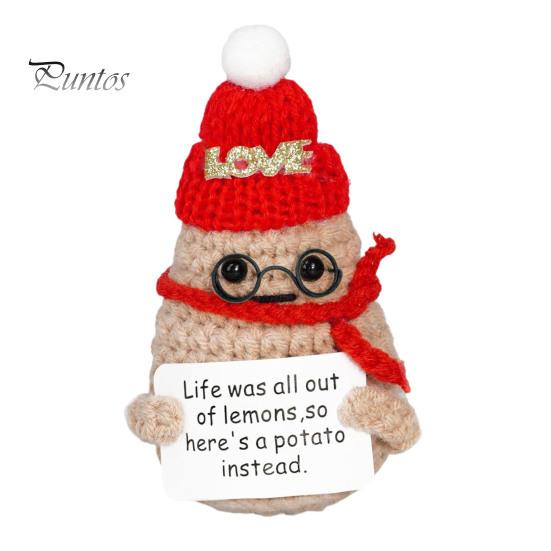 Рождественские вязаные крючком позитивные очки Картофель с вдохновляющей открыткой Эмоциональная поддержка Ручная вязаная рождественская шапка Картофельная кукла Украшение Орнамент красный