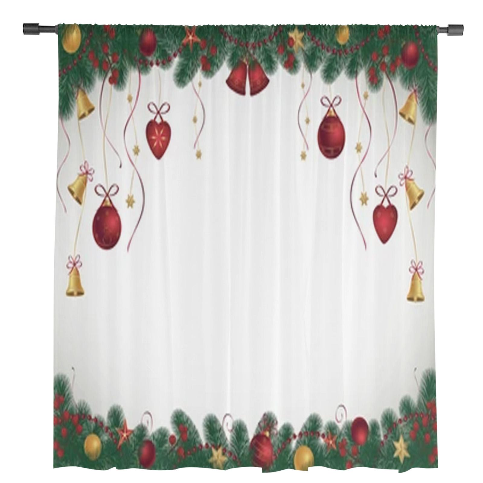 Рождественские еловые ветки и шары, шифоновые прозрачные шторы для гостиной, спальни, декор, кухонное окно, вуаль, тюлевая занавеска
