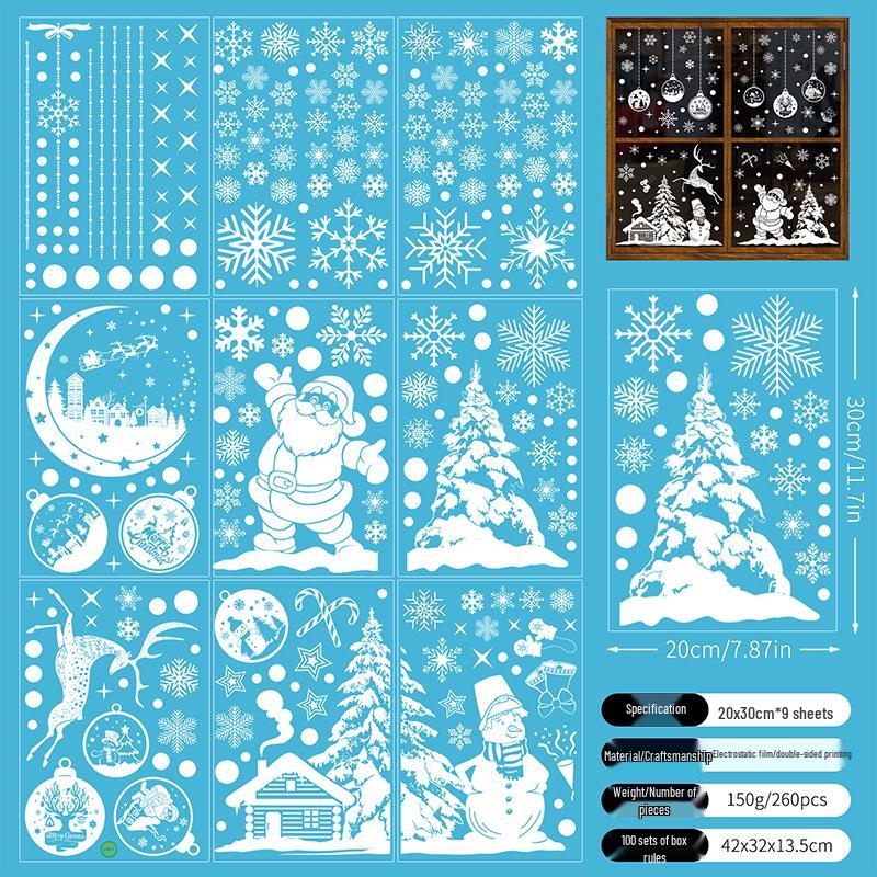 Рождественские наклейки на окна 2025: Санта, Олень, Шары для Торговых Центров