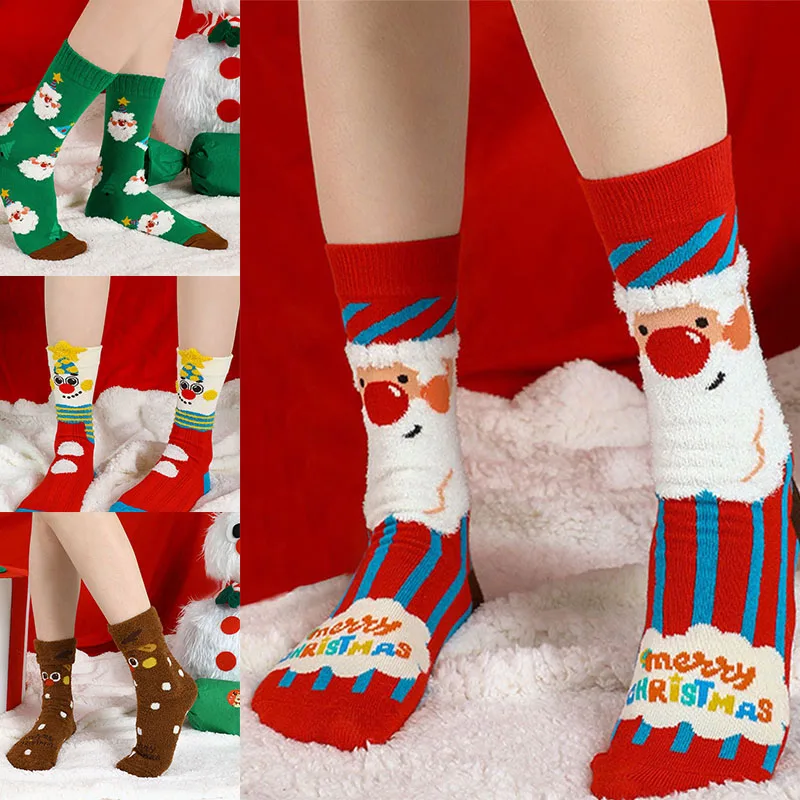 Рождественские носки из кораллового флиса с героями мультфильмов, милые хлопковые теплые носки средней длины, плюшевые утолщенные напольные чулки для сна, мягкая зимняя одежда