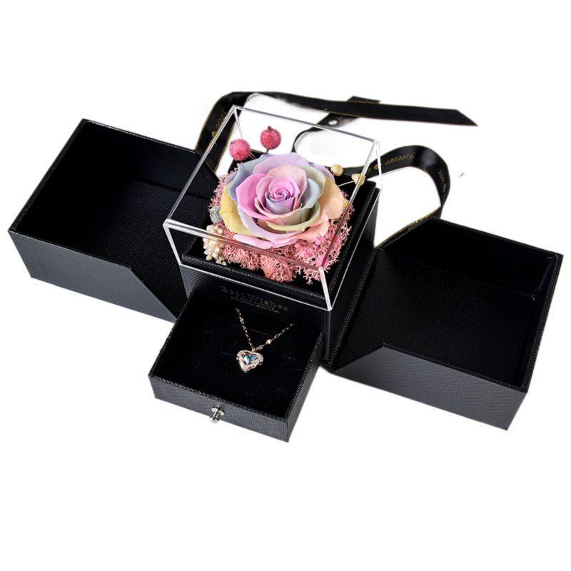 Рождественские подарки для нее Вечная роза Шкатулка для драгоценностей Бессмертный цветок Роза для мамы, жены, подарок на день рождения (Без ожерелья)