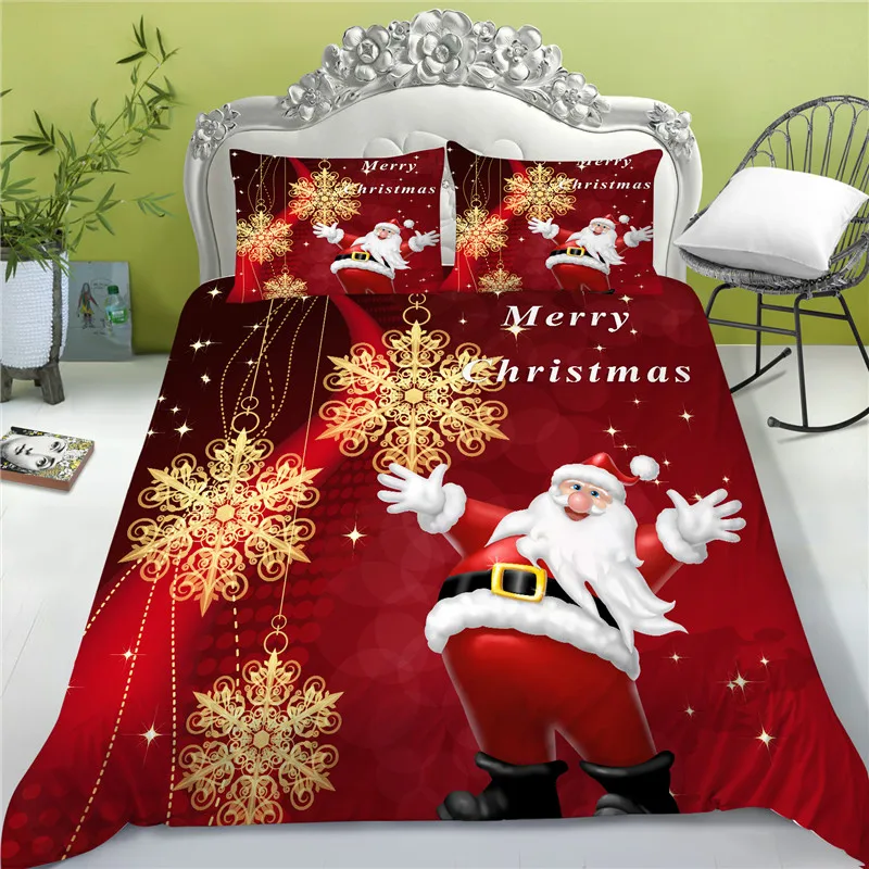 Рождественский Комплект постельного белья с пододеяльником 3D, размер King/Queen, супер мягкие украшения для спальни на красном фоне для мальчик...
