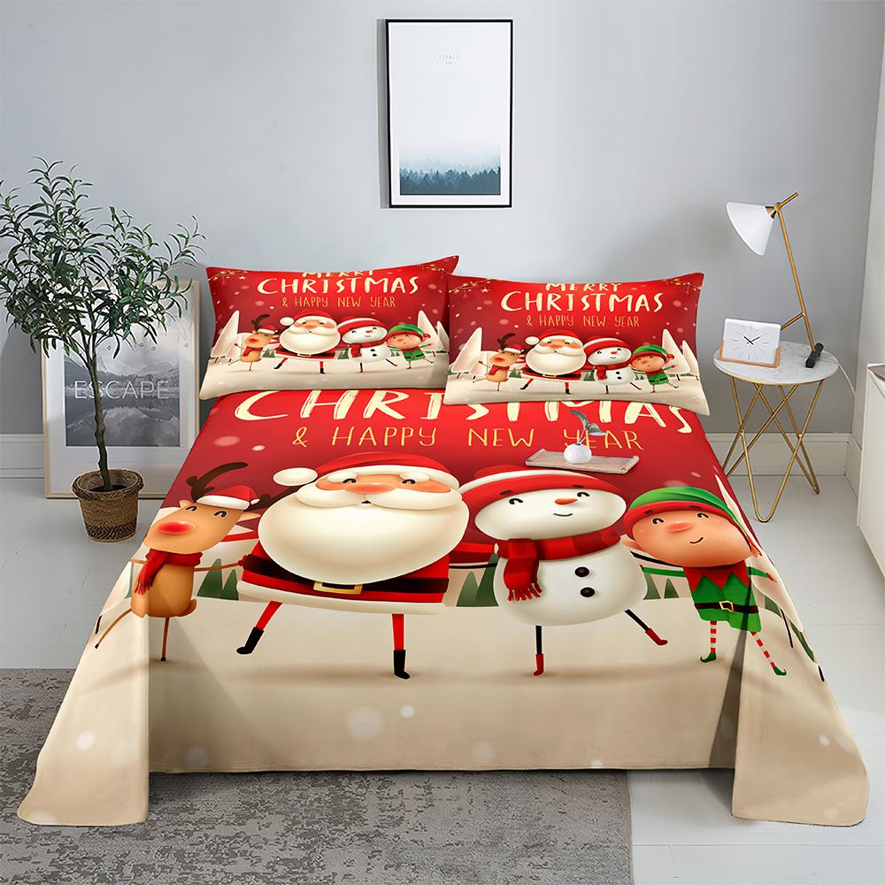 Рождественский Снеговик 0.9/1.2/1.5/1.8/2.0м Цифровая Печать Полиэстер Простыня С Наволочкой Принт Комплект Постельного Белья 150X230cm(2Pcs)