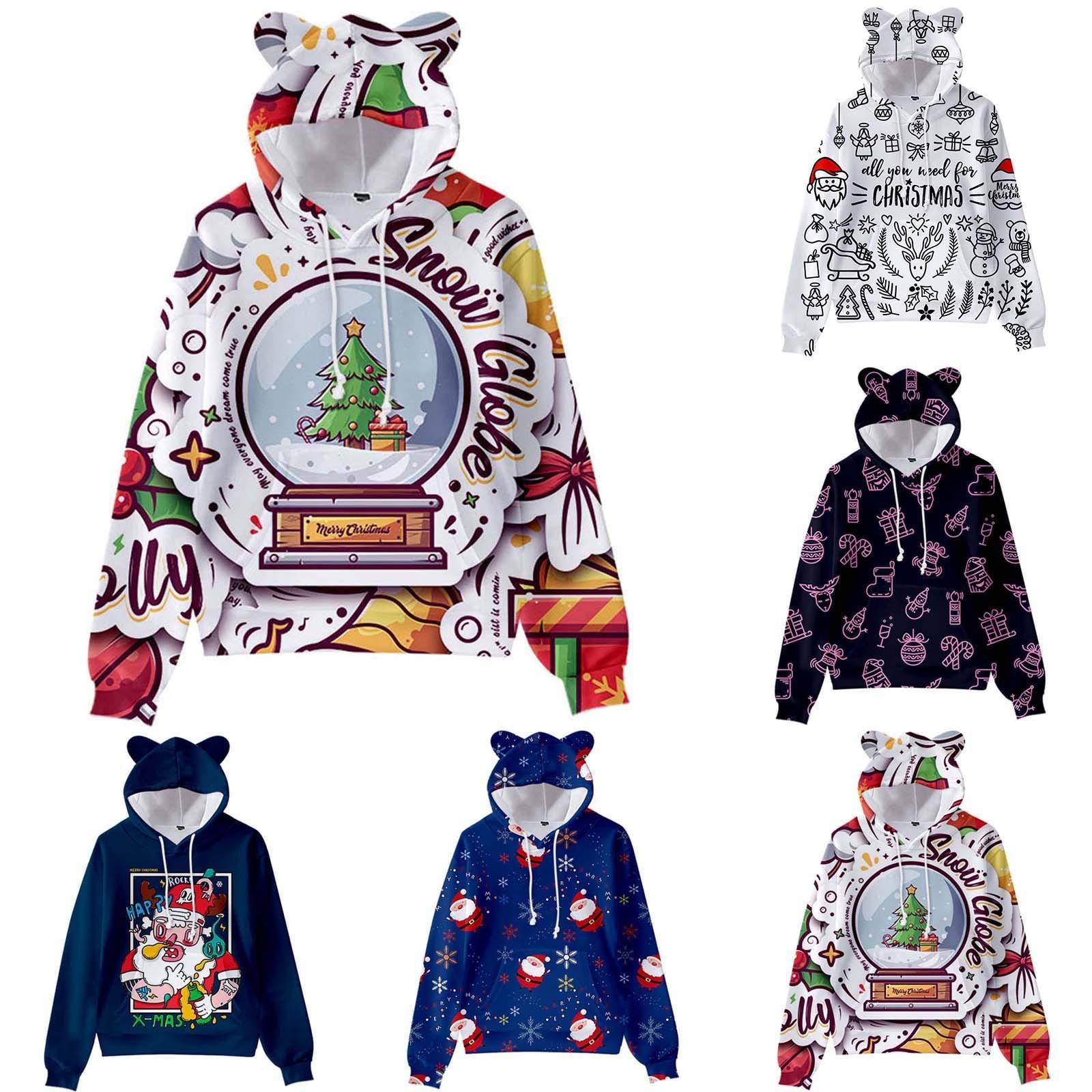 Рождественский галстук-краситель Принт с длинными рукавами Кошачьи уши с капюшоном Свитер для детей