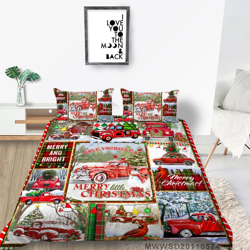 Рождественский подарок Пододеяльник Наволочка Набор из двух или трех предметов Мультяшная цифровая печать Полиэстер EU single 135*200