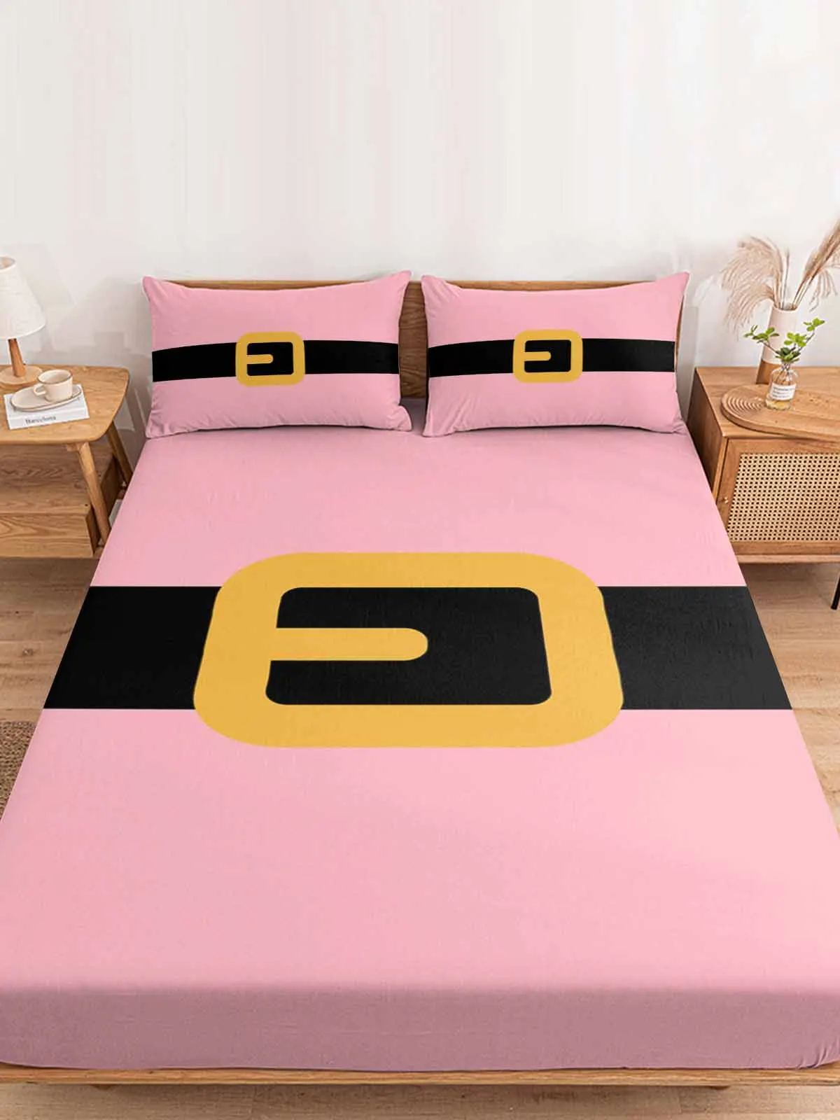 Рождественский розовый чехол для матраса с Санта-Клаусом, с четырьмя углами, эластичная постельная простыня с чехлом-таблеткой