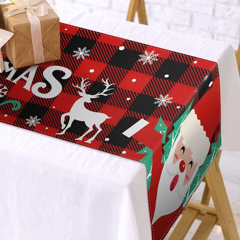 Рождественский стол-флаг Снеговик в клетку с принтом Новогодняя зимняя кухонная скатерть Настольный флаг Семейная вечеринка Украшение ресторана 150x33cm красный