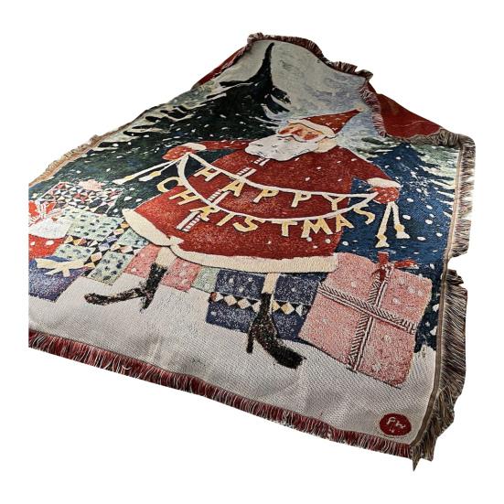 Рождественское одеяло, красивое хлопковое, волосатое плюшевое одеяло ручной работы, не вызывает аллергии, теплое, с узором Санта-Клауса, на стену