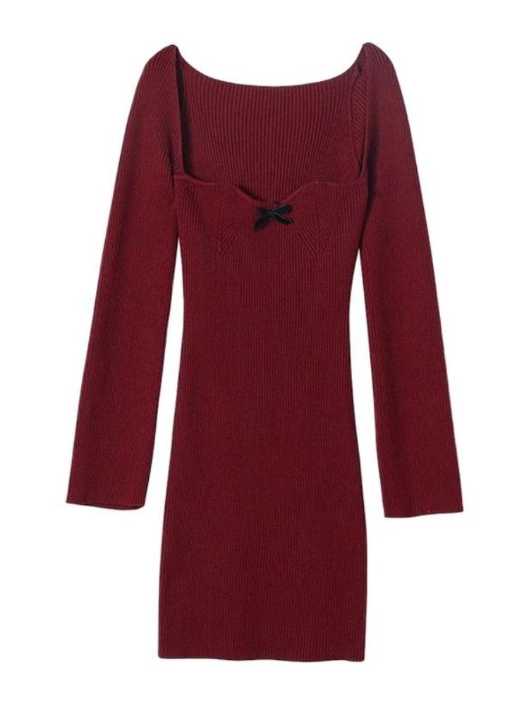 Рождественское трикотажное мини-платье с открытыми плечами Новые элегантные красные платья Осень-зима Новое облегающее платье Spice Girls с узкими бедрами M красный