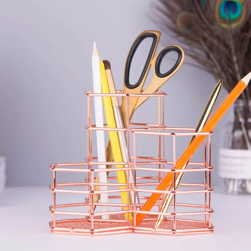 Роза золотая металлическая ручка держатель шестиугольник подставка для ручек и карандашей контейнер Настольный органайзер школьный стол ...