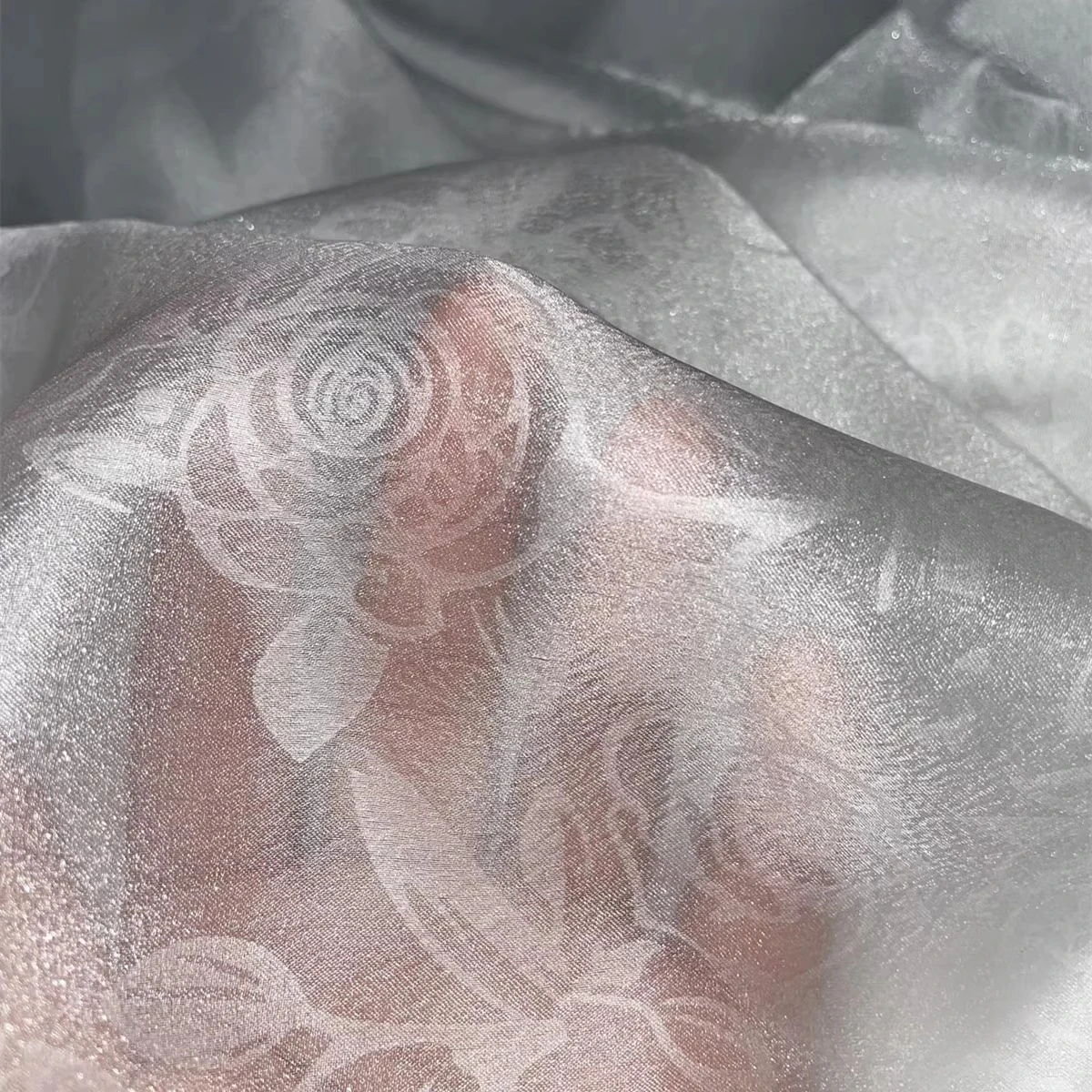 Роза темная пряжа с узором мягкая и глянцевая ткань из органзы шитье детской одежды платья легкая и блестящая дизайнерская ткань
