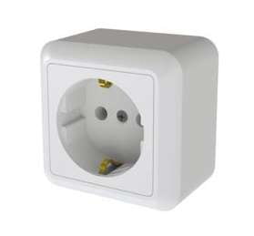Розетка КУНЦЕВО-ЭЛЕКТРО Оптима РА16-376, открытый монтаж, однопостовая, с з/к, 16A, в сборе, IP20, слоновая кость (8036), РА16-376