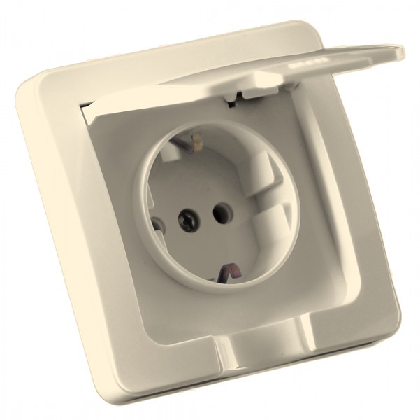 Розетка HEGEL MASTER, скрытый монтаж, однопостовая, с з/к, со шторками, с крышкой, 16A, в сборе, IP44, слоновая кость (РС16-512-01)