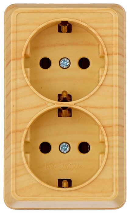 Розетка IEK ОКТАВА РС22-3-ОС, открытый монтаж, 2-х постовая, с з/к, 16A, в сборе, IP20, сосна (ERO21-K03-16-DC), РС22-3-ОС