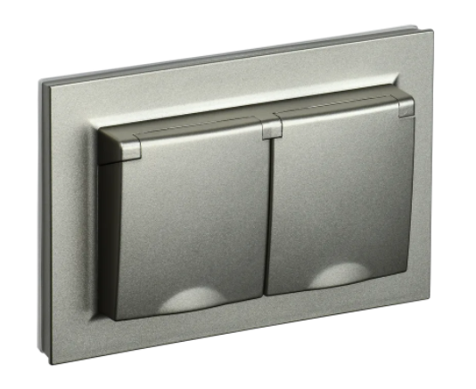 Розетка IEK BRITE РСбш12-3-44-БрШ, скрытый монтаж, 2-х постовая, с з/к, со шторками, с крышкой, 16A, в сборе, IP44, шампань (BR-R26-16-44-K37-F), РСбш12-3-44-БрШ