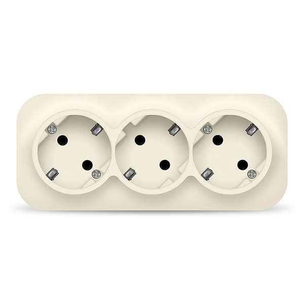 Розетка IONICH, открытый монтаж, 3-х постовая, с з/к, 16A, в сборе, IP20, слоновая кость (1429)