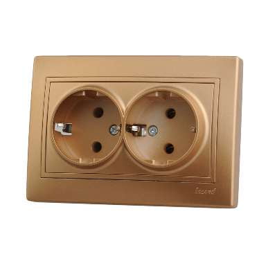 Розетка LEZARD MIRA, скрытый монтаж, 2-х постовая, с з/к, 16A, в сборе, IP20, золотой-металлик (701-1313-127)