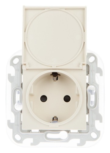 Розетка Simon Push&Go, скрытый монтаж, однопостовая, с з/к, со шторками, с крышкой, 16А, в сборе, IP20, слоновая кость (2420448-031)