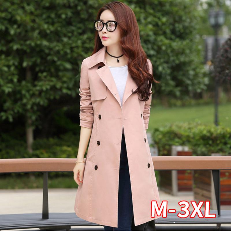 Spring Trench Coat For Women Streetwear Turn-down Collar Double Breasted Coats Female Plus Size 3XL XXXL Sobretudo Feminino, Pink