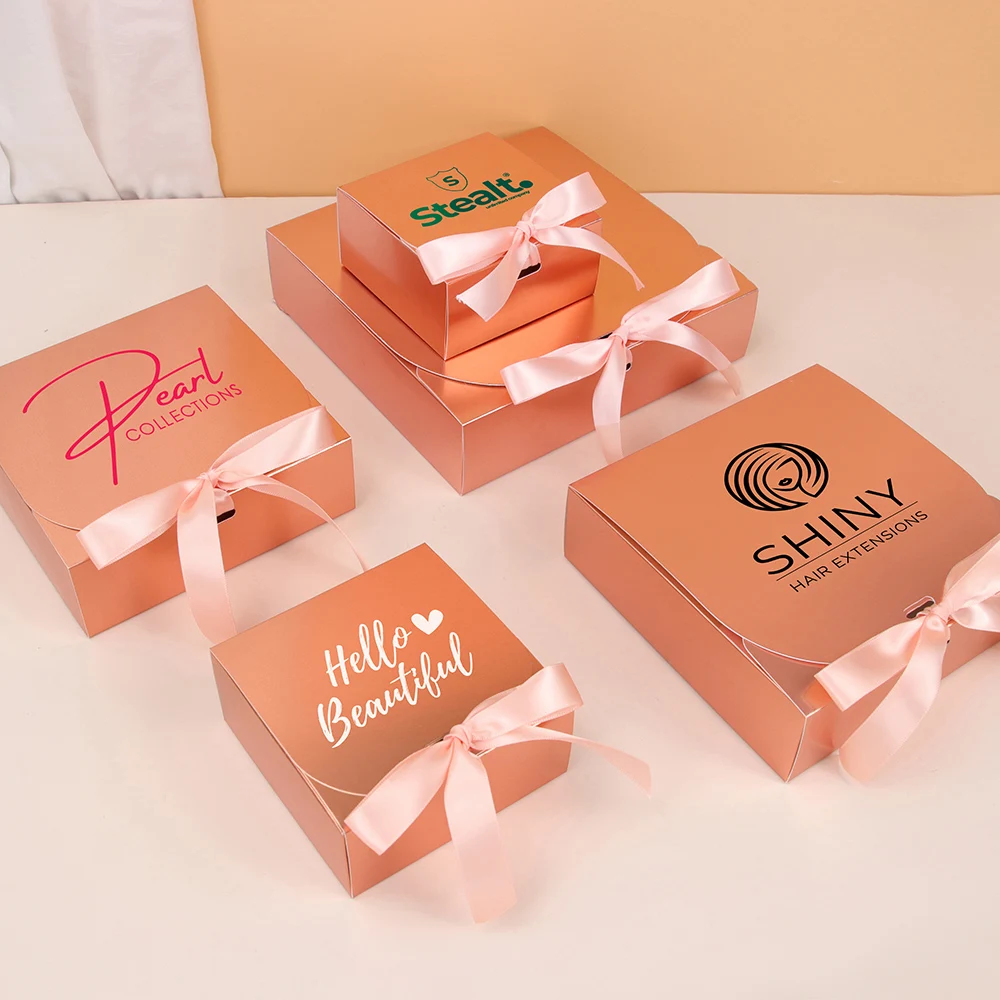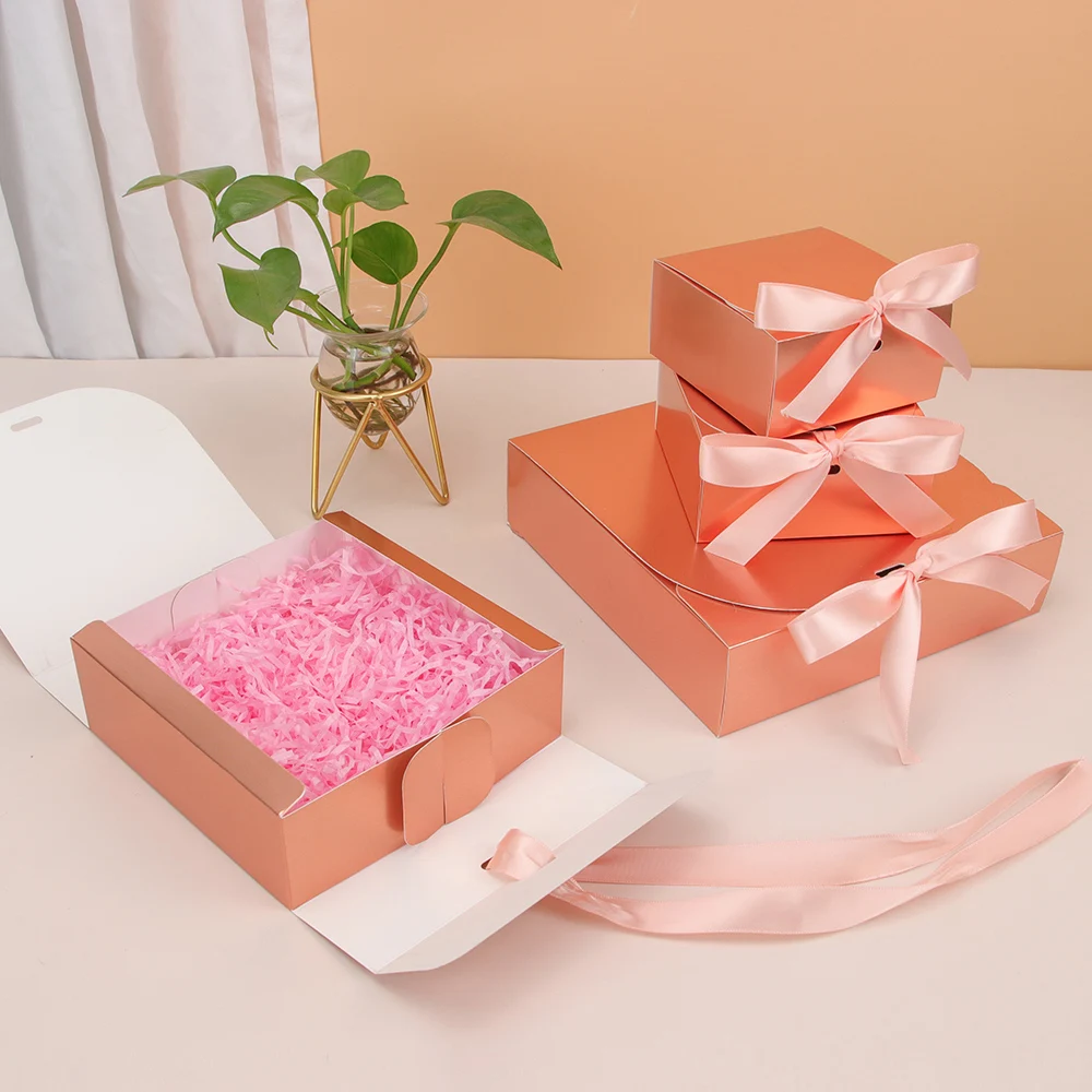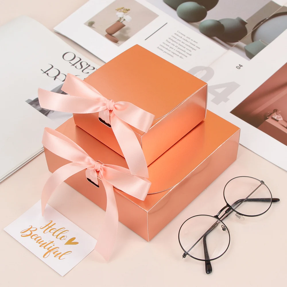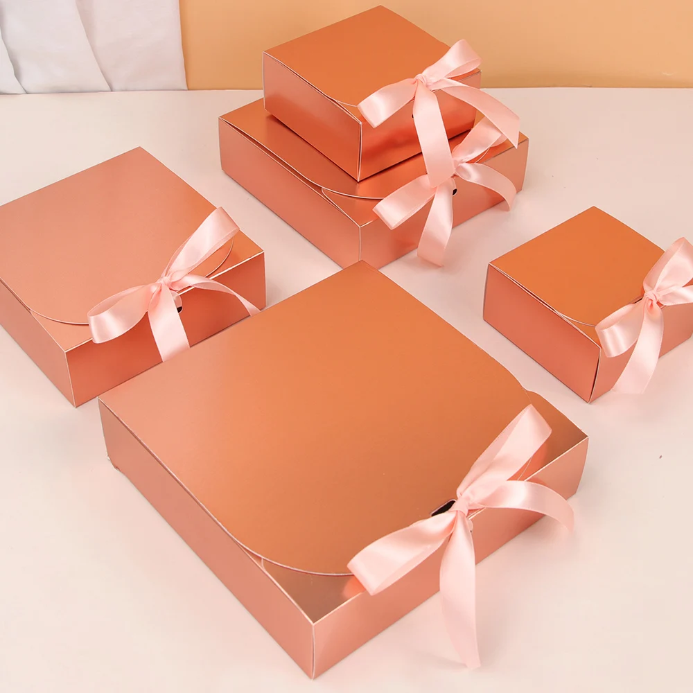Розовая Золотая лента, подарочная картонная коробка, праздничная яркая одежда, картонная бумажная сумка для обычной упаковки