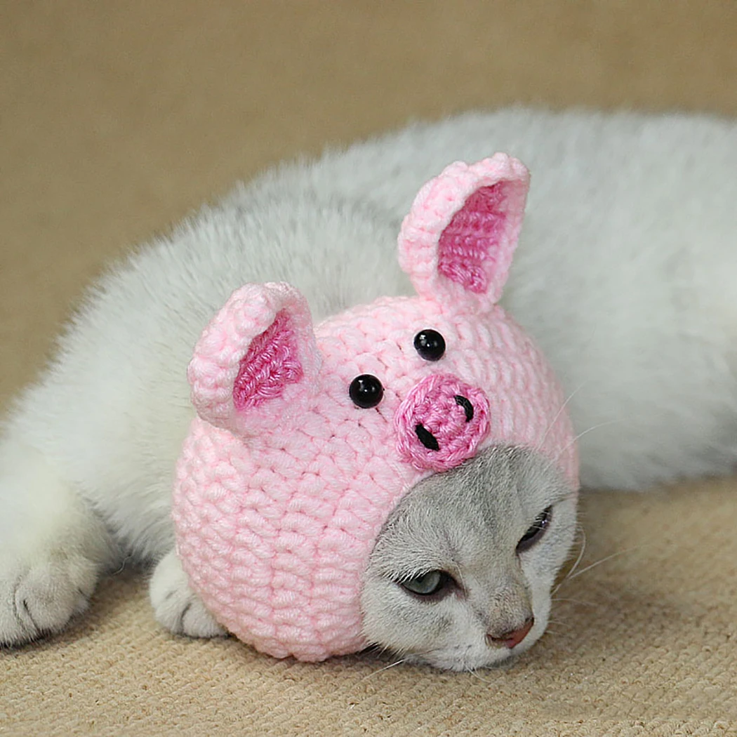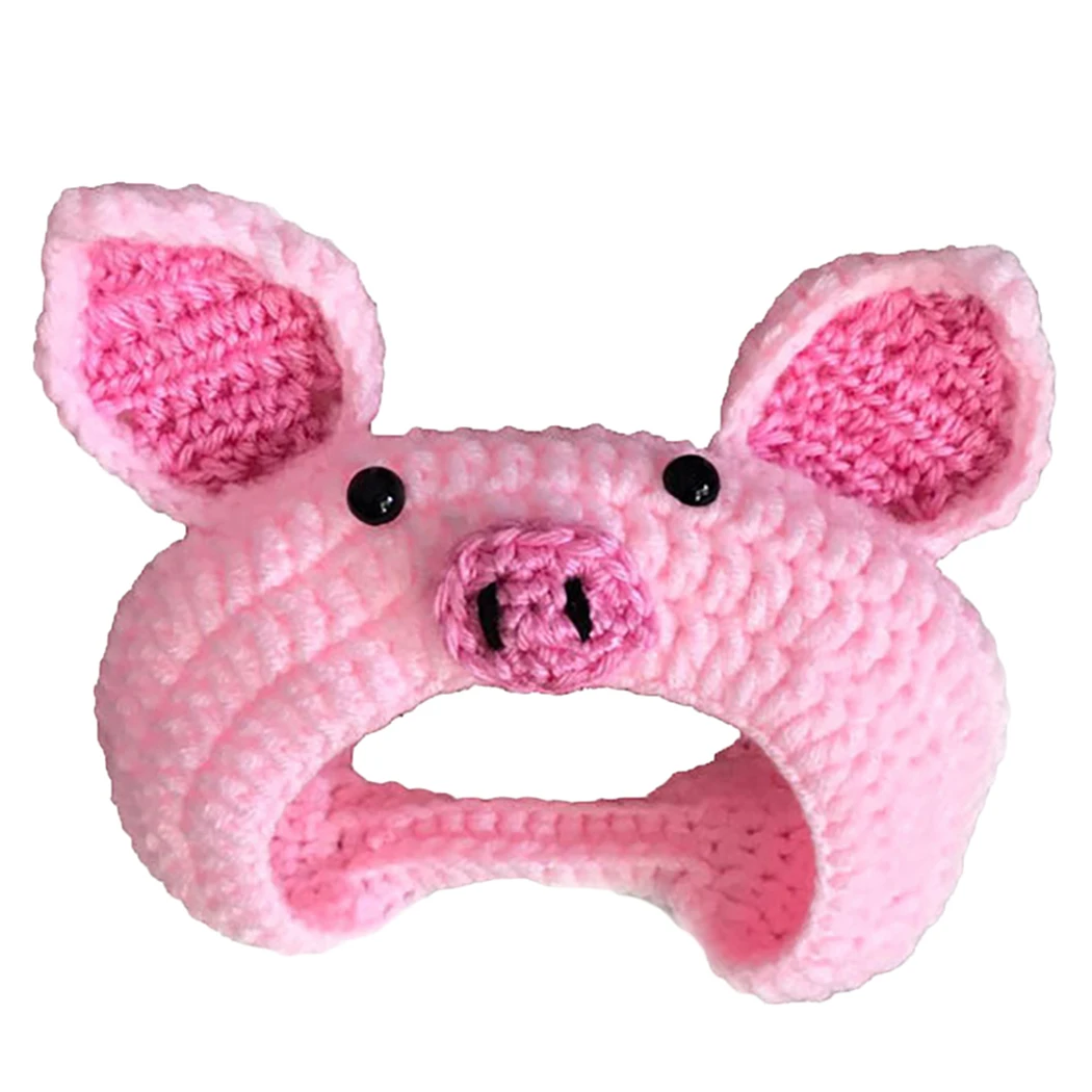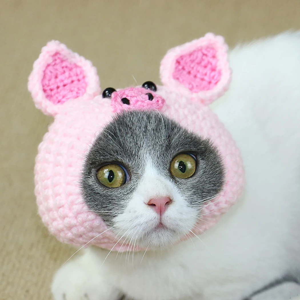 Розовая Милая мультяшная шерстяная шапка для домашних питомцев, теплая вязаная шерстяная шапка, облегающая шапка с изображением животных, ...
