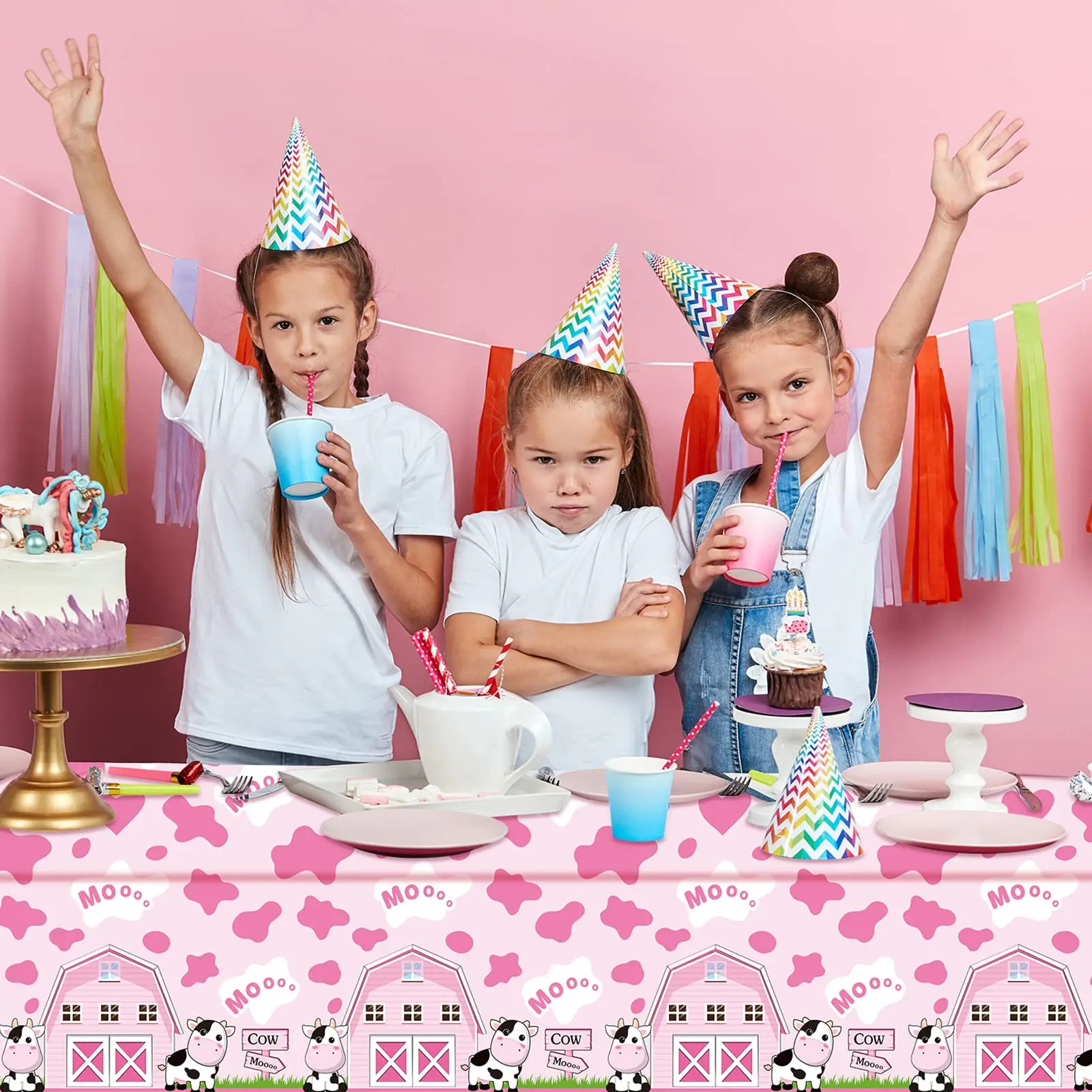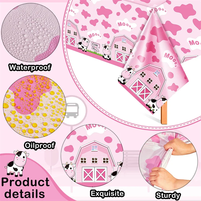 Розовая коровья одноразовая скатерть, украшения для дня рождения, коровьего принта, пластиковая скатерть, коровья ферма, детский душ, вечер...
