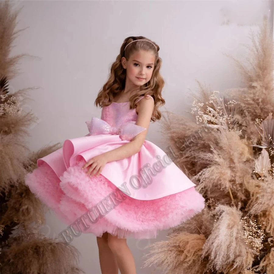 Розовое Многоярусное платье для девочек-подростков, праздничное платье с блестками для дня рождения, свадьбы, показа, первого причастия, вс...