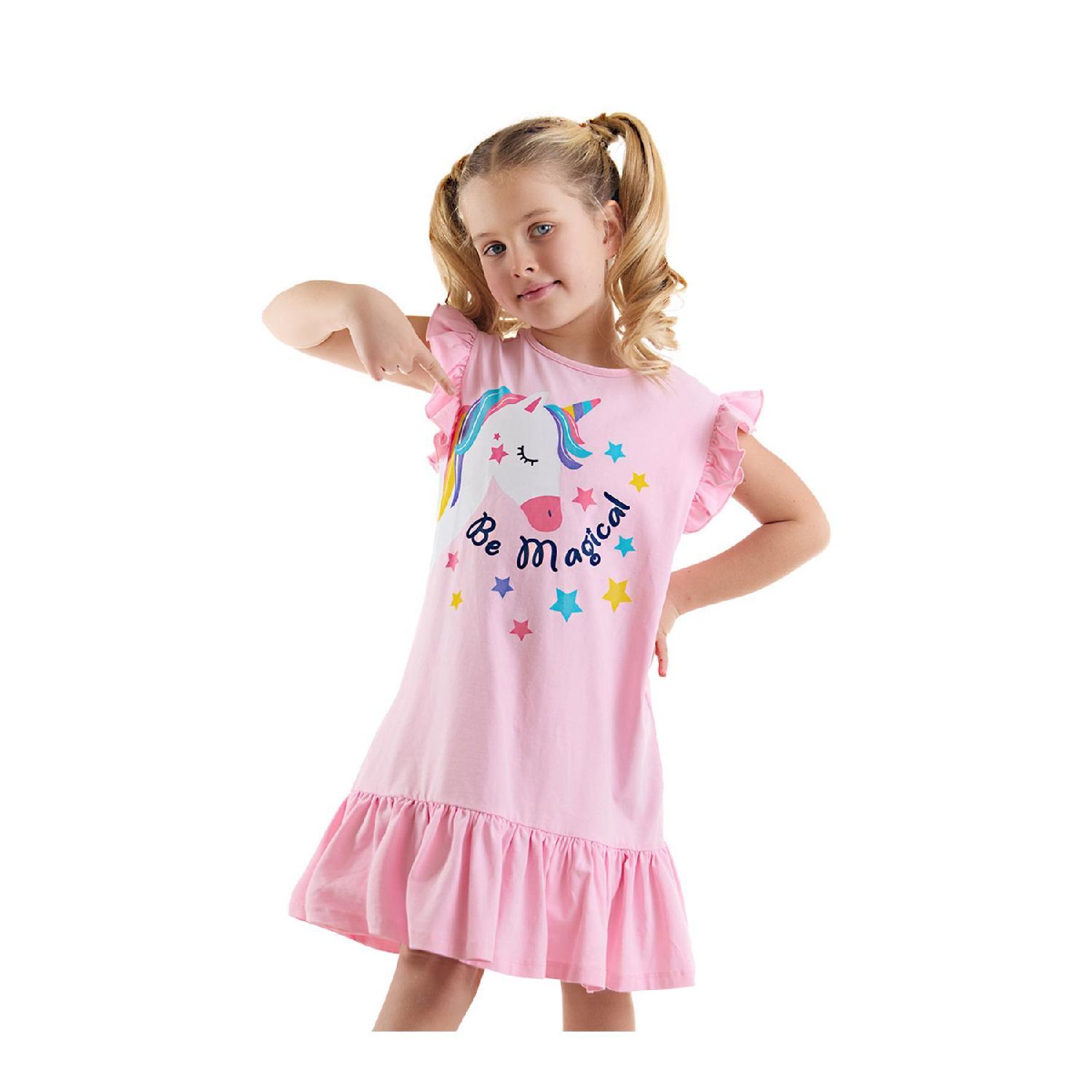 Розовое летнее платье с рюшами Unicorn Magic Girl 2 YAŞ розовый