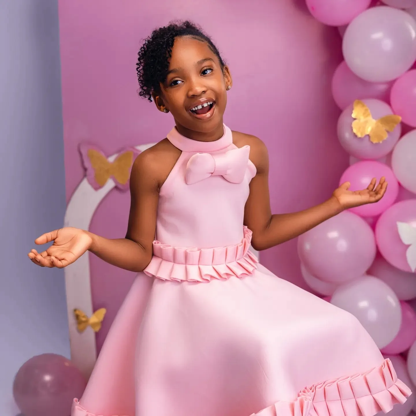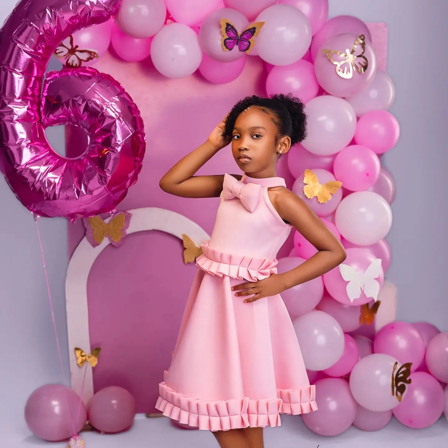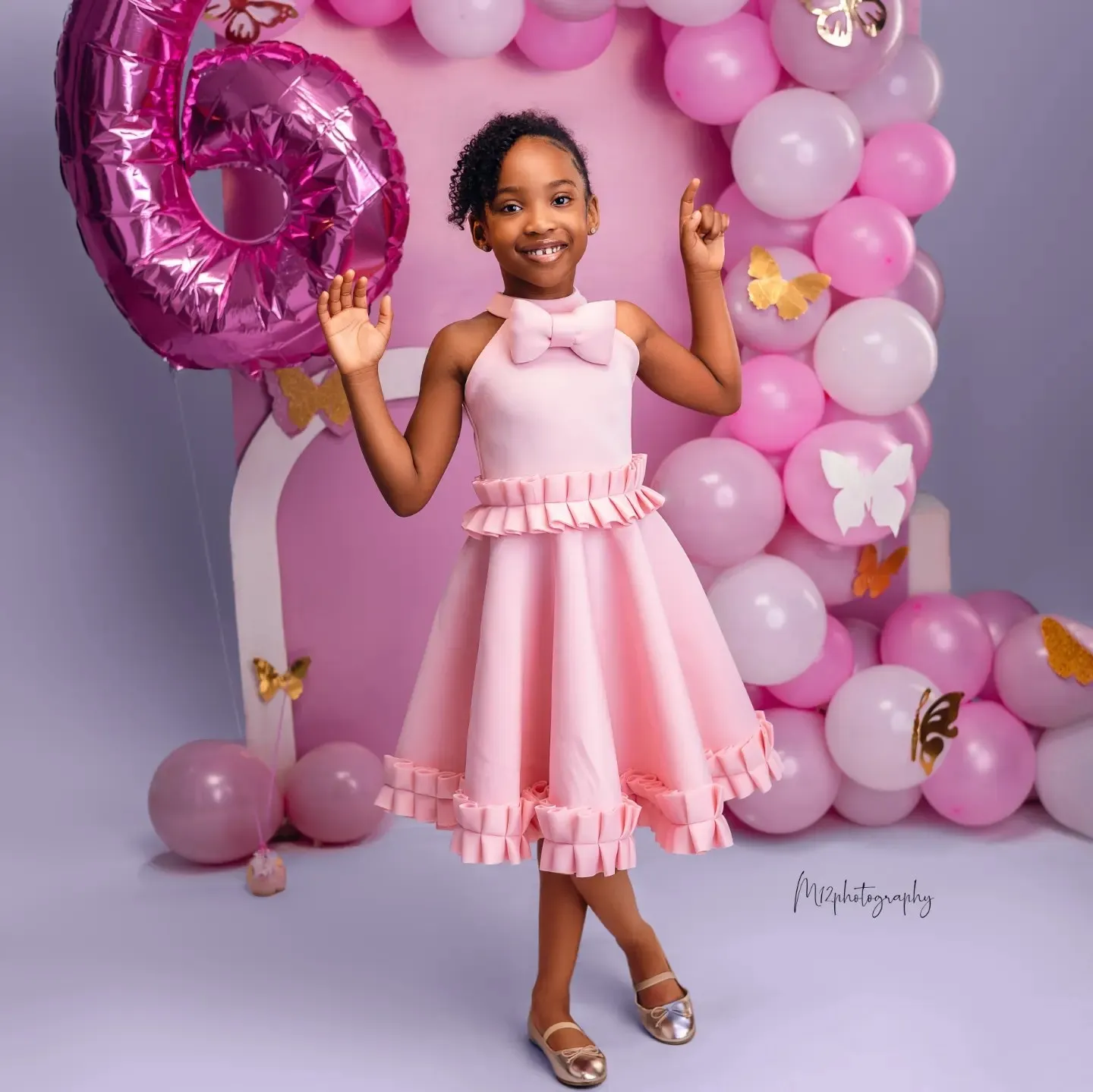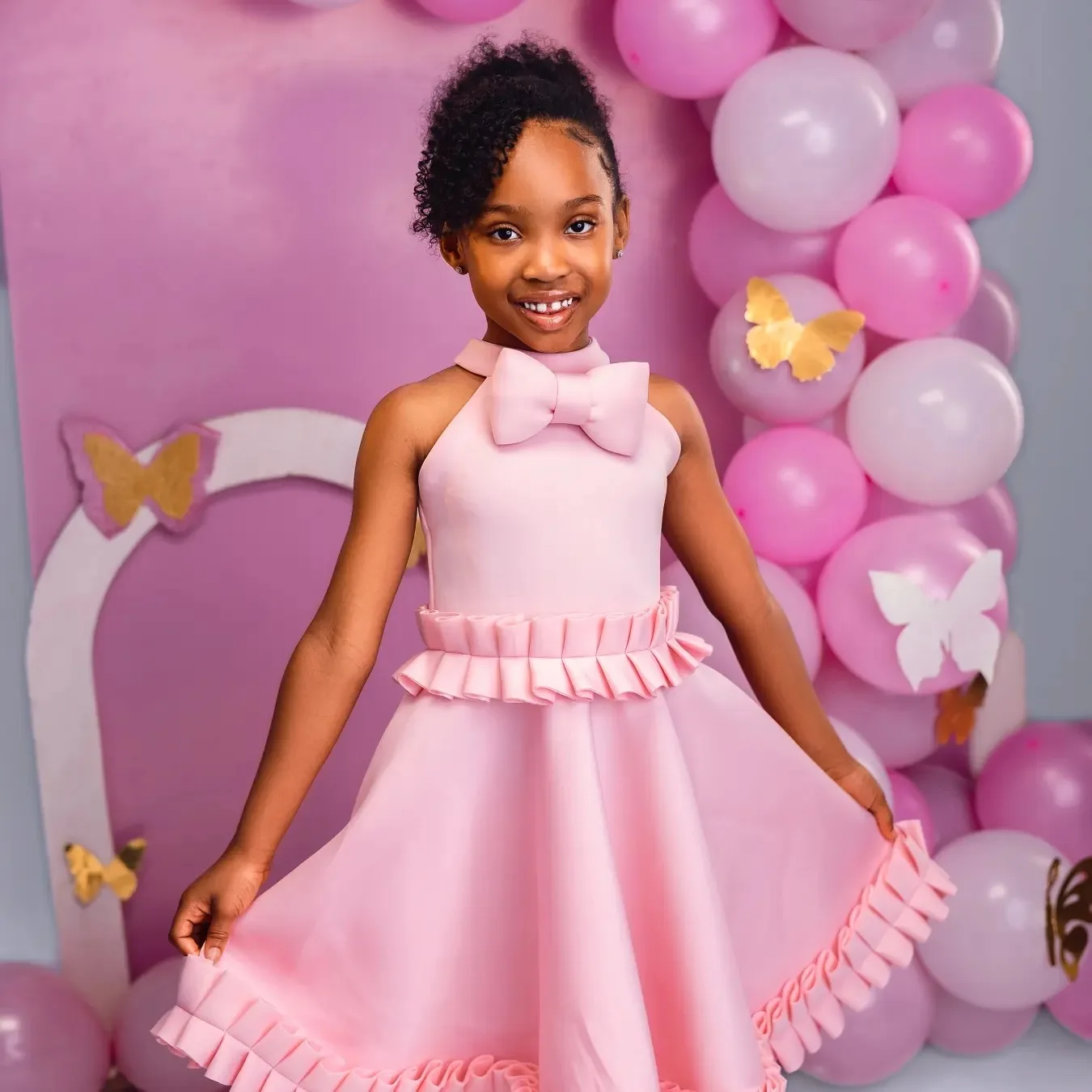 Розовые платья с цветочным узором для девочек, индивидуальное платье длиной до колена для маленьких девочек, свадебное платье на день рождения, пышная одежда
