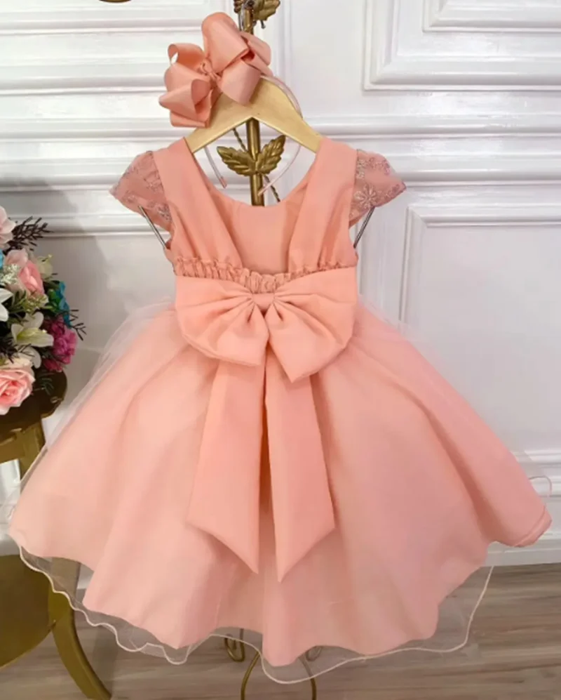 Розовые платья с цветочным узором для девочек по индивидуальному заказу на свадьбу, жемчуг и бабочки с бантом, милое детское бальное платье для дня рождения, первого причастия