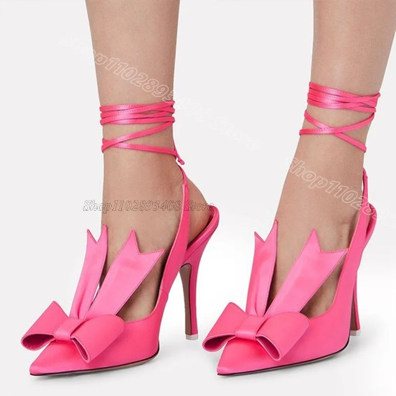 Розовые шелковые сандалии на шпильке с бантом, с острым носком и ремешком на щиколотке, в британском стиле, дизайнерская женская обувь, 2024