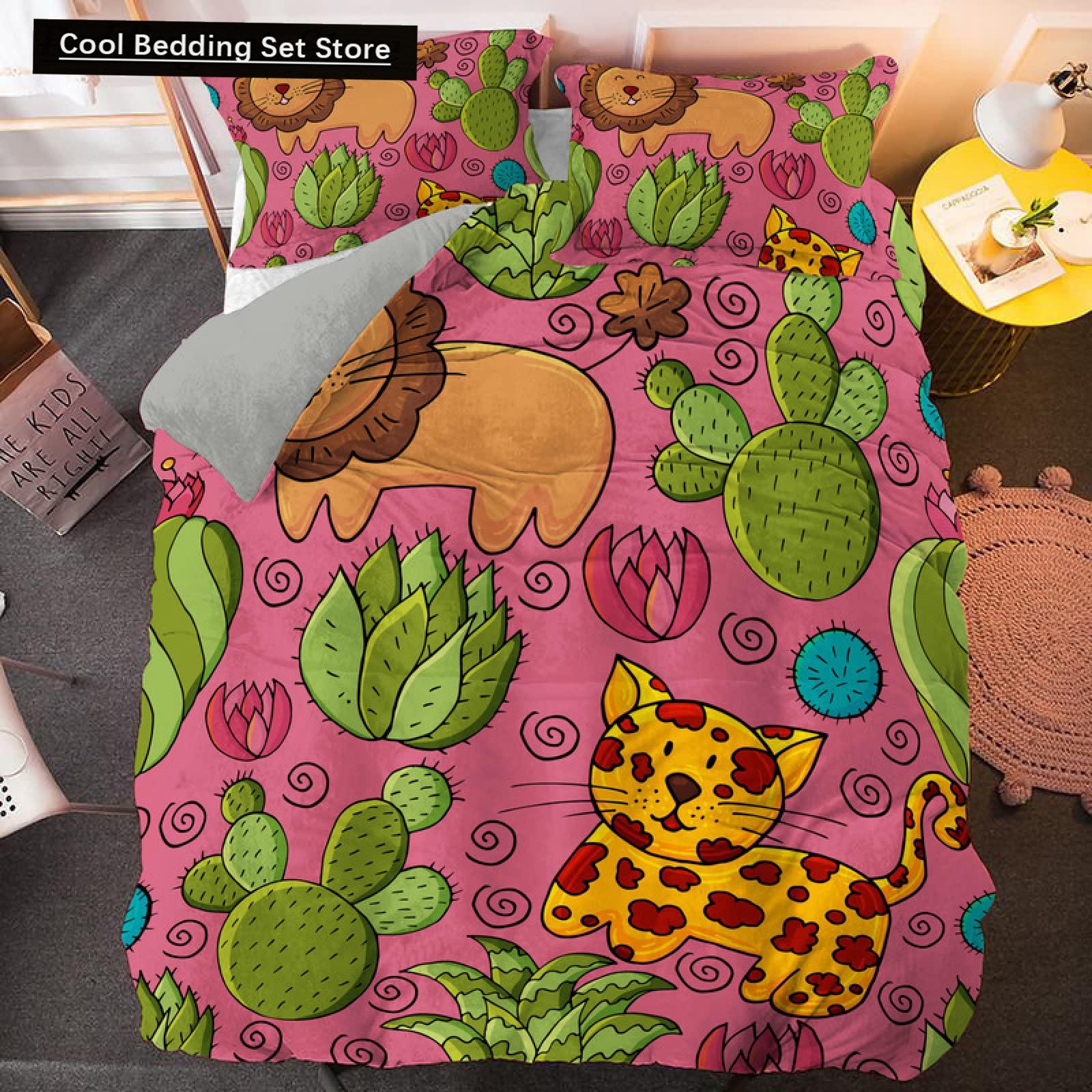 Розовый Мультяшный Животный Король Королева Пододеяльник Каваий Рисунок Панды Постельное Белье для Детей девочек Дикая природа 2/3шт полиэстер Покрывало EU single(135x200cm)