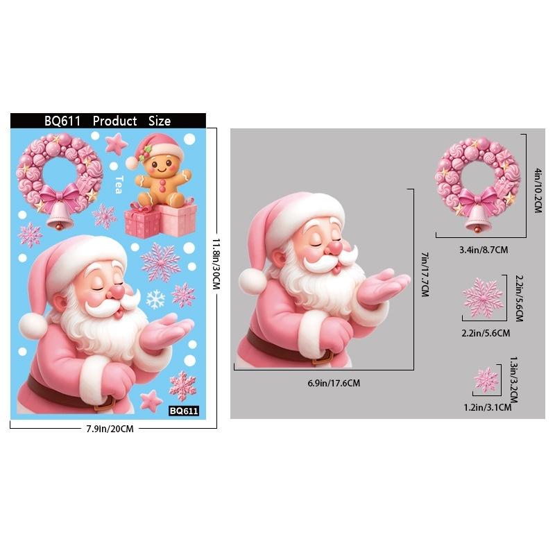 Розовый Санта Клаус Рождественские наклейки на окна Милый олень Пряничный человечек Наклейка на стену Домашнее украшение Декаль Ноэль Керст Навидад A3