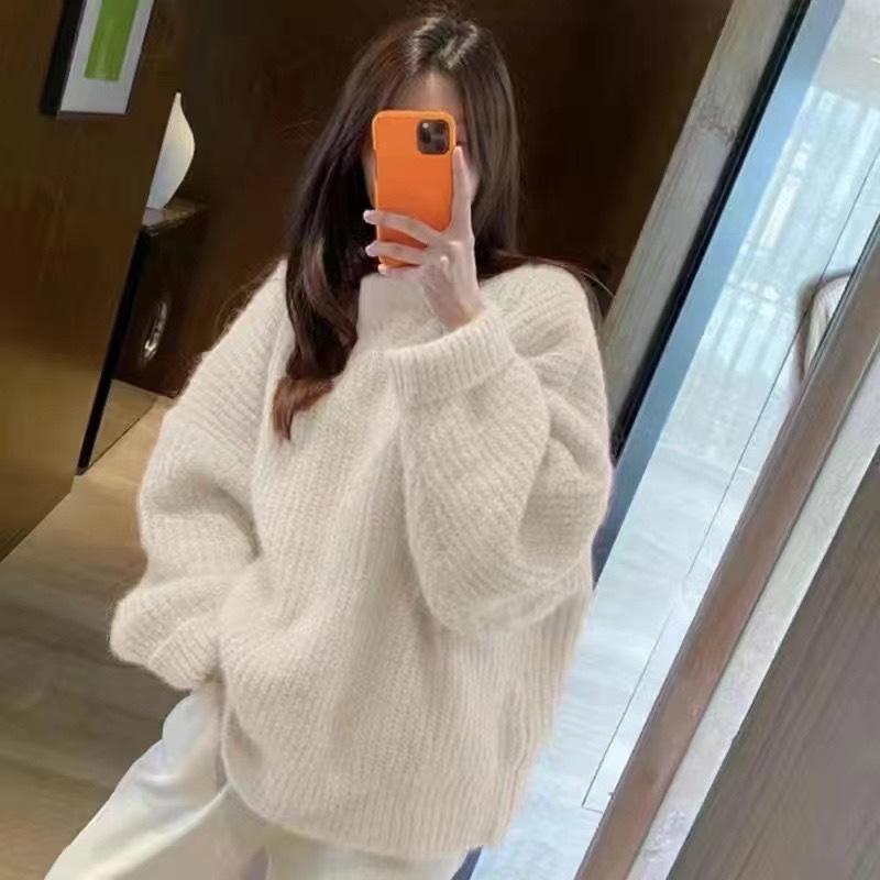 Розовый кашемировый свитер в корейском стиле: Женский свитер свободного кроя осень/зима One size грязно-белый