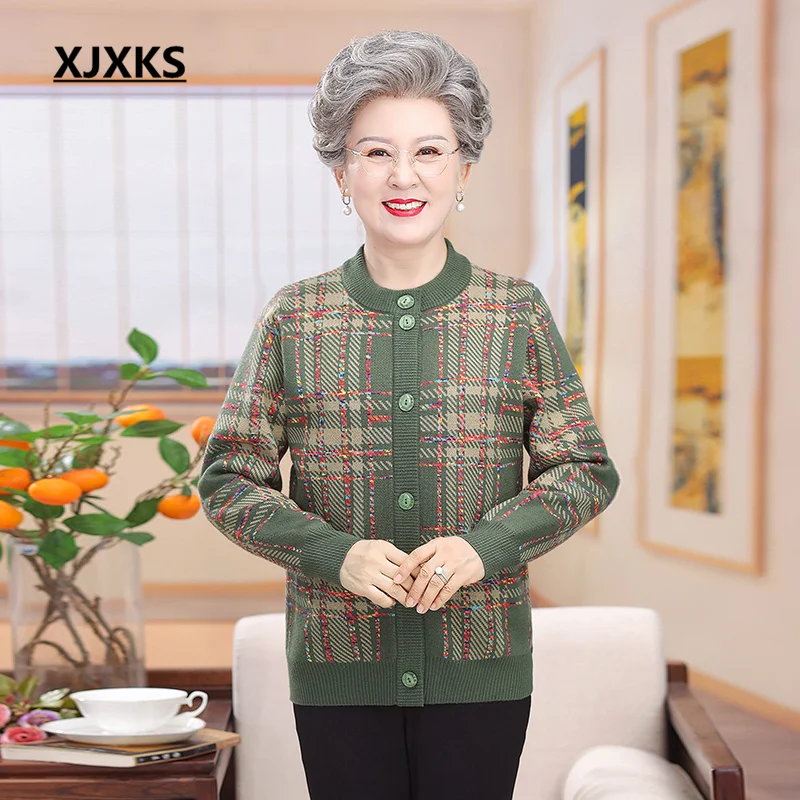 XJXKS 2022 Winter Latest Plus Size Cardigan Women's Jacket Middle-aged Elderly Mother's Clothing Jaqueta Feminina Chaquetas