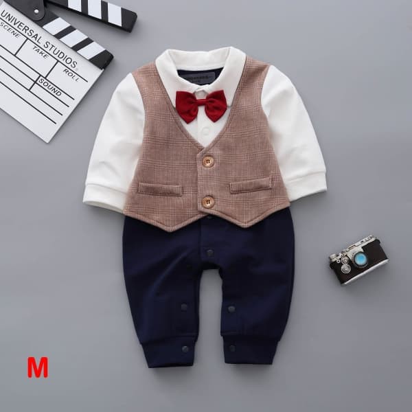Promo Spesial - Baju Romper Baby Natal Semi Formal Cokelat/Biru Import Bagus Keren