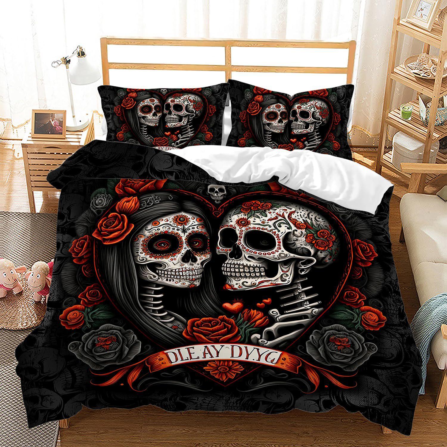 Рок Череп Готика Комплект лоскутного одеяла из трех предметов 3D Цифровая печать Комплект постельного белья EU single 135*200