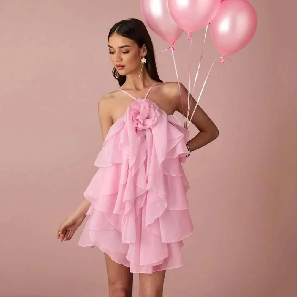 Романтические розовые мини-платья для выпускного вечера по индивидуальному заказу, шифоновые вечерние платья с лямкой на шее, пляжное вечернее платье, новое платье Vestido De Novia