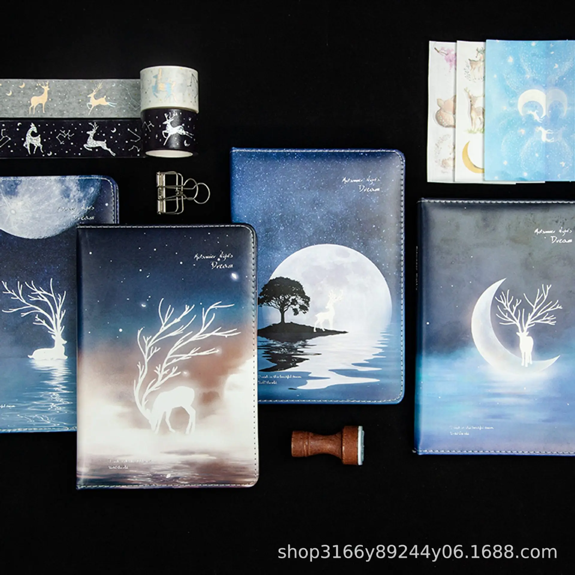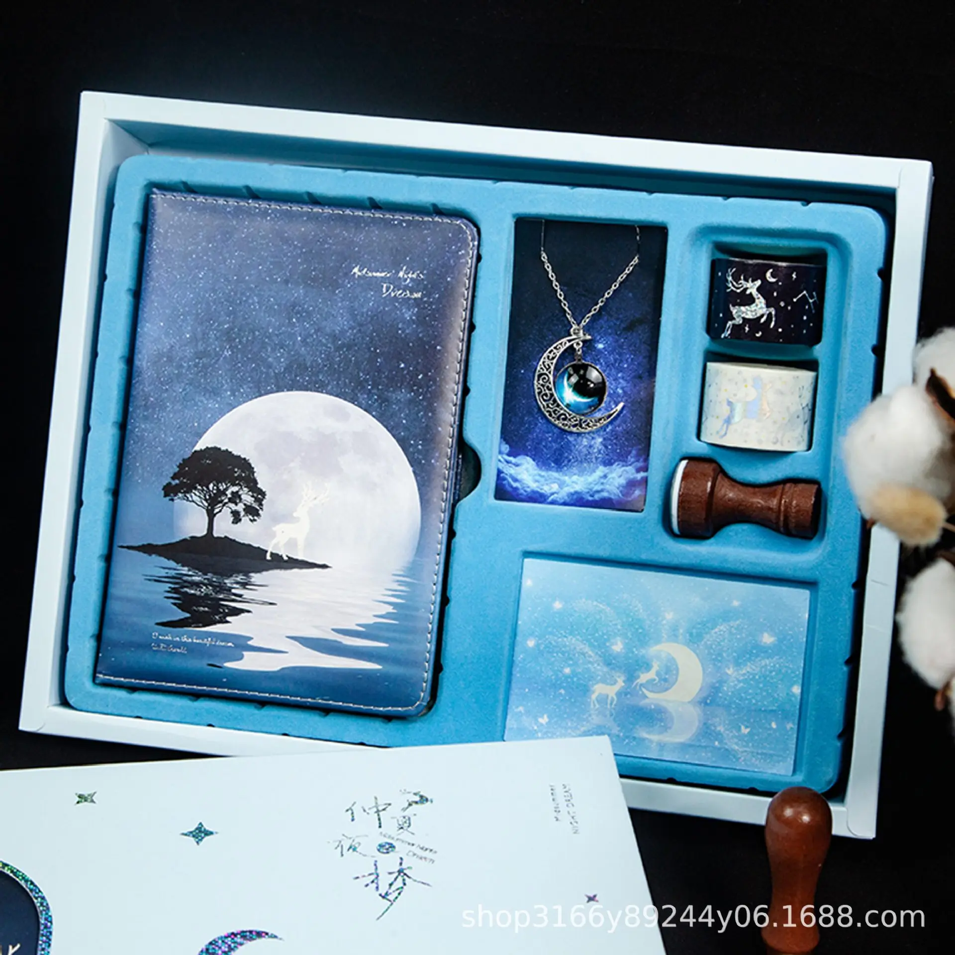 Романтическое ожерелье со Звездной луной, оленем, памятью о середине лета, ночной мечты, светящийся ручной набор, Подарочная коробка, цветная страница, дневник в твердом переплете