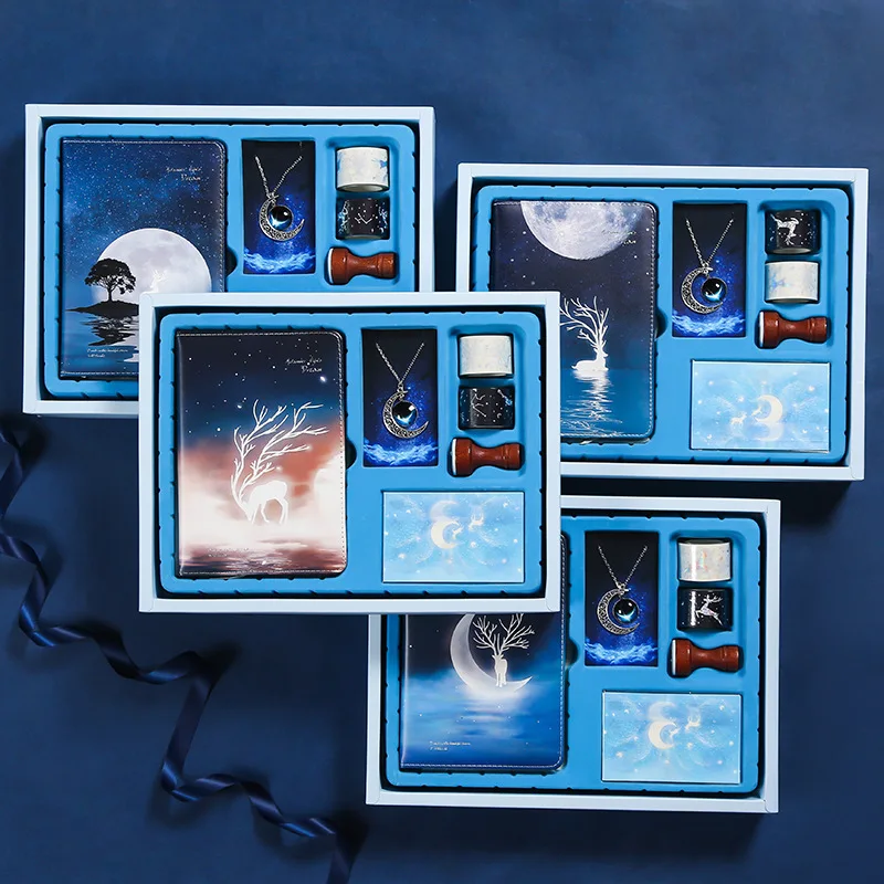 Романтическое ожерелье со Звездной луной, оленем, памятью о середине лета, ночной мечты, светящийся ручной набор, Подарочная коробка, цветная страница, дневник в твердом переплете