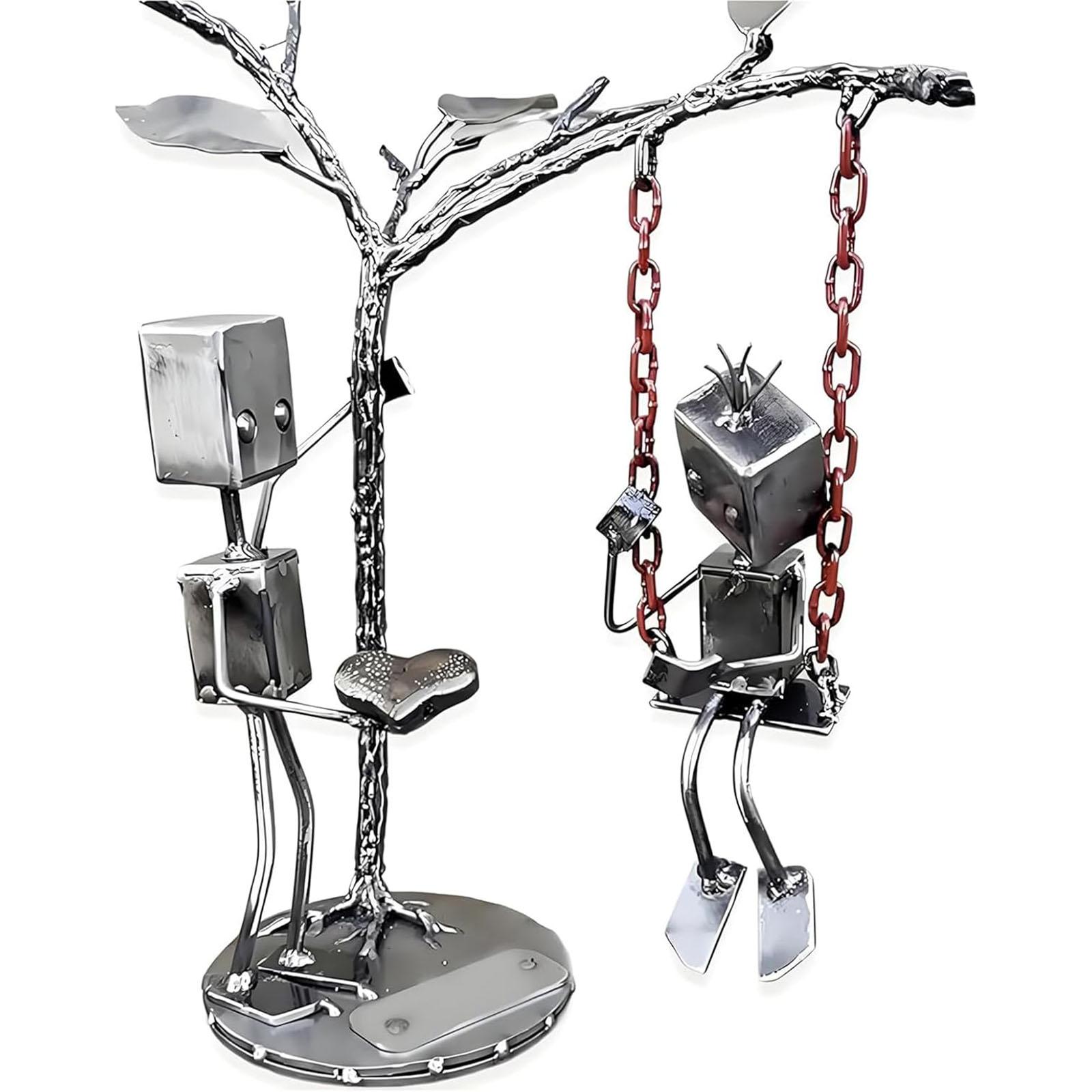 Романтическое признание робота, Скульптура робота из металла ручной работы, Уникальный декор для стола в стиле стимпанк, Для юбилеев, свадеб One Size