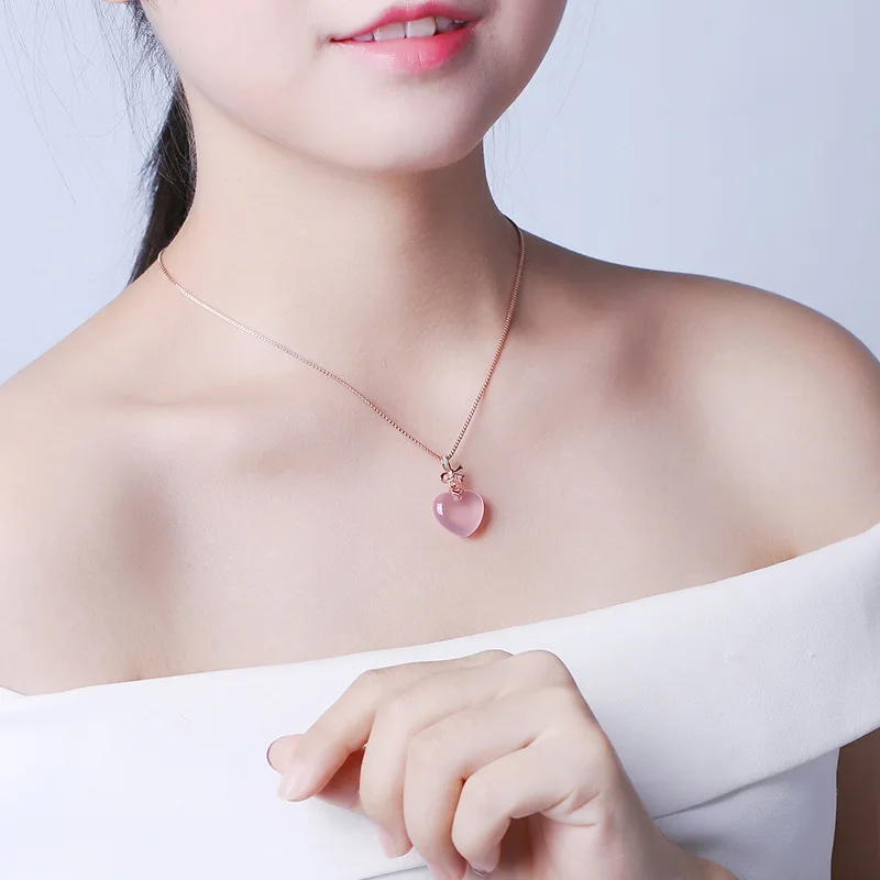 Романтическое сердце новые модные Кулоны из нержавеющей стали, 14K, покрыто розовым золотом ювелирные изделия ожерелья для женщин розового цвета с украшением в виде кристаллов Ожерелье для свадьбы обручение Вечерние